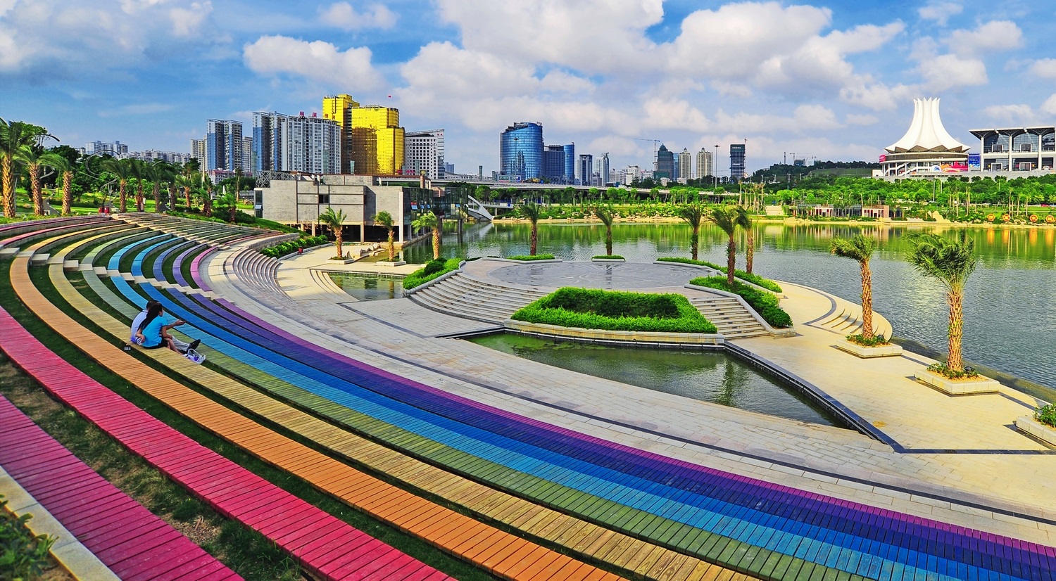 项目特色:以“都会水岸·音乐生活”为主题,集游览、休闲、娱乐于一体的开放性都会滨水公园。全园计划总面积为24.68公顷,其中水域面积约10.00公顷,绿地面积约7.02公顷。